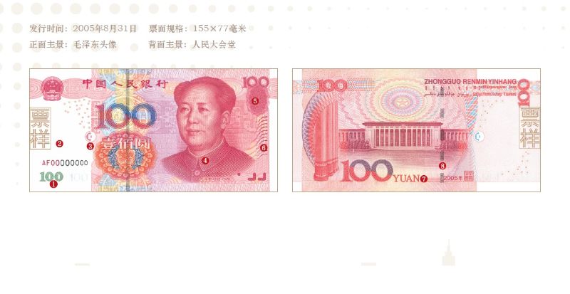 票面正面主景毛泽东头像,采用凹印技术印刷;用手触摸,具有明显的凹凸感。
